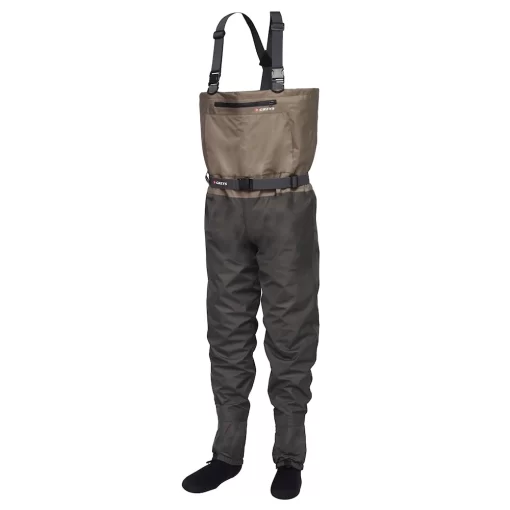 Den stora frontfickan rymmer enkelt en flugask, medan den invändiga flip-out-fickan håller mobilen säker. Små förvaringsfack gör det lätt att ha tafsmaterial, flugfett eller en linavklippare nära till hands. Med en 12.000 mm membran och elastiskt bälte är dessa vadare både bekväma och praktiska.