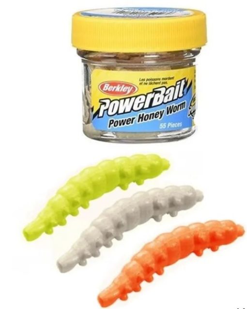 Powerbait Honey Worms är små gummilarver som doftar vitlök.