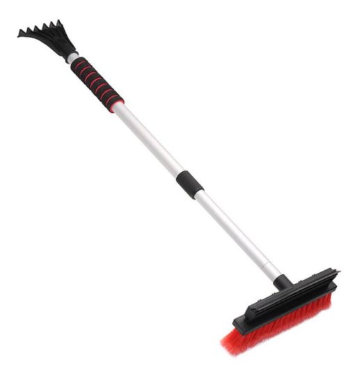 En snöborste för diverse ändamål, har borstfunktion i ena änden och en skrapa till fönsterrutorna på t.ex bilen i andra änden.